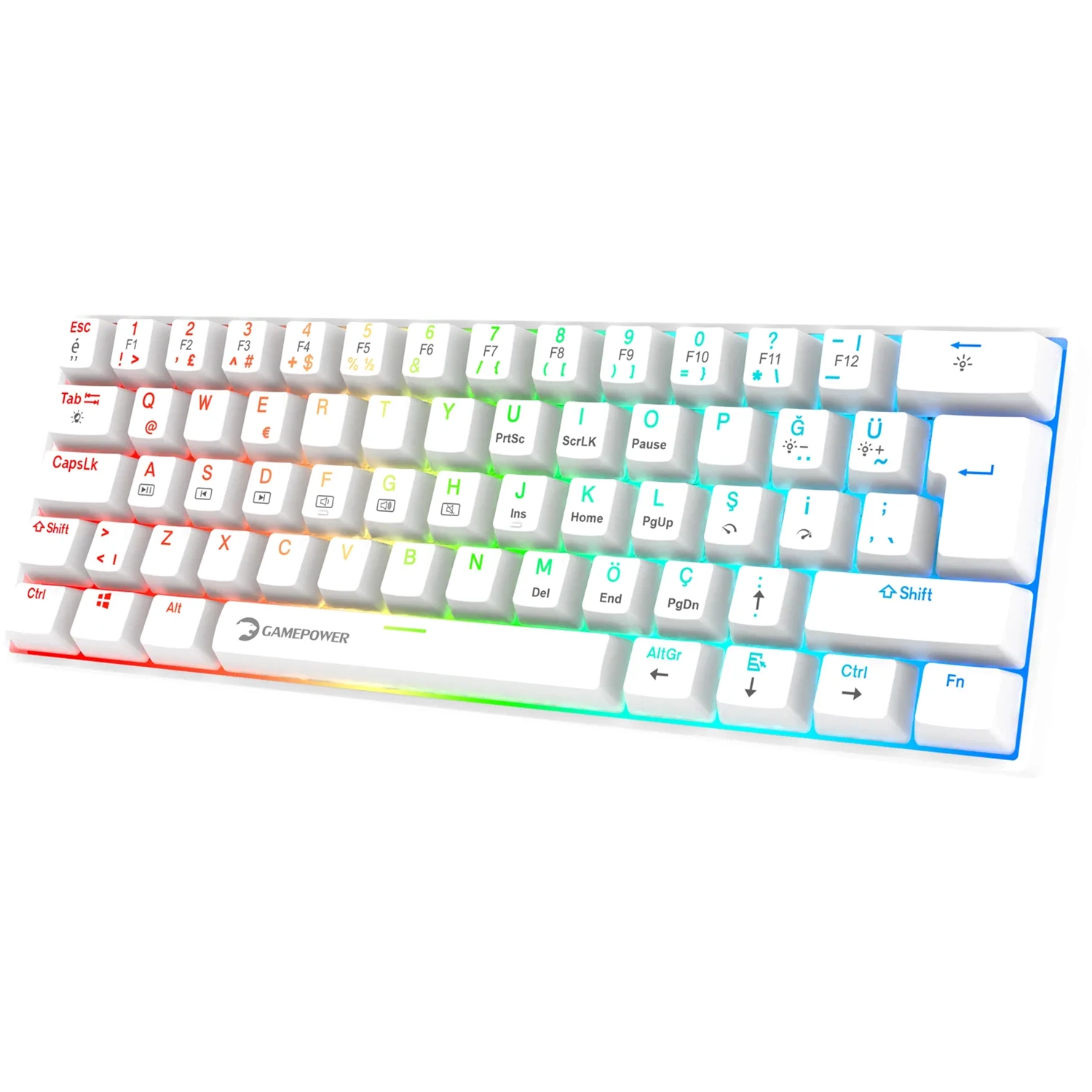 GAMEPOWER LYRA RGB 60M MEKANIK BLUE SWITCH GAMING OYUNCU KLAVYE BEYAZ