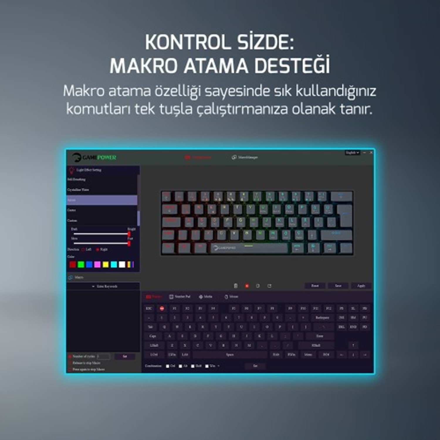 GAMEPOWER LYRA RGB 60M KLAVYE MEKANIK BLUE SWITCH SİYAH