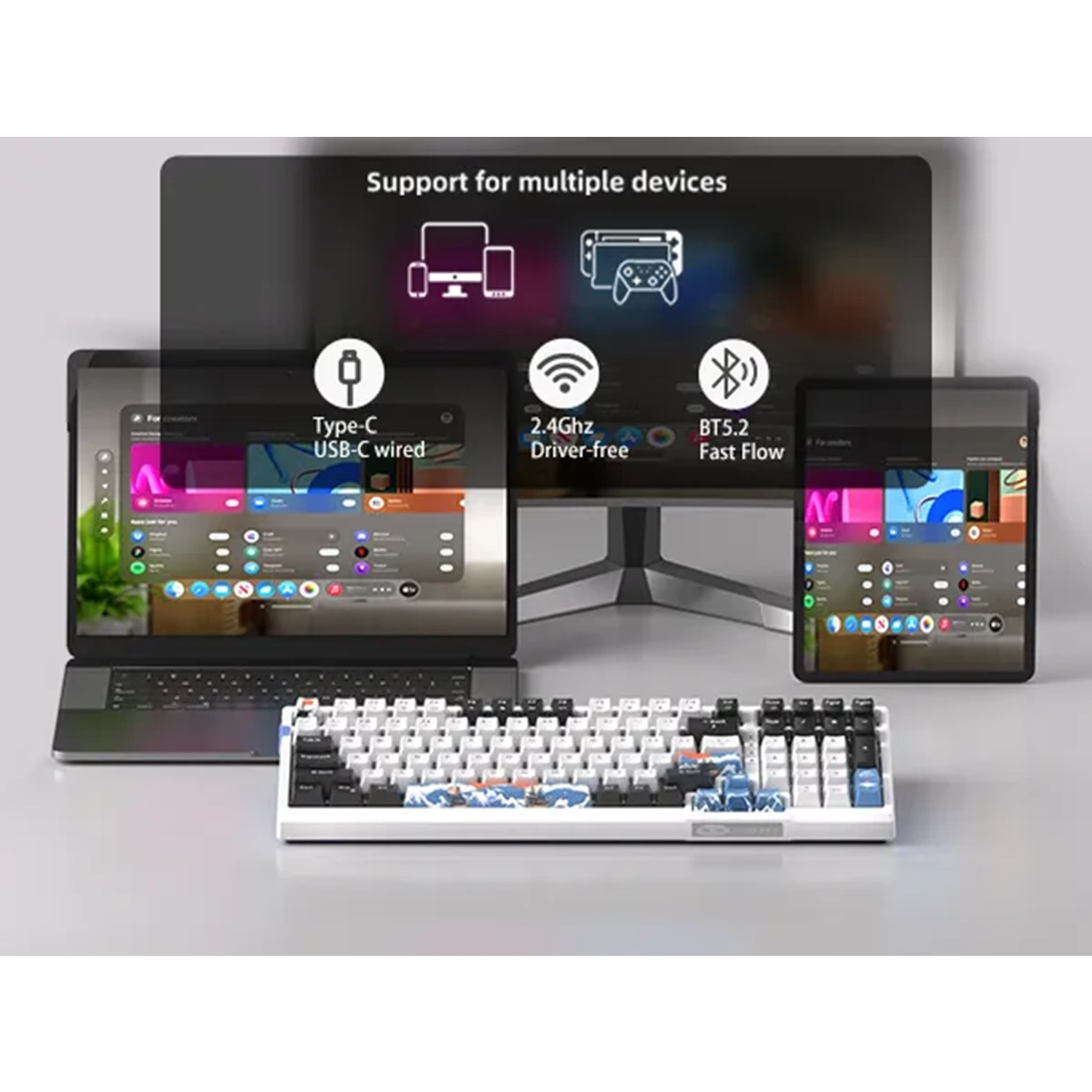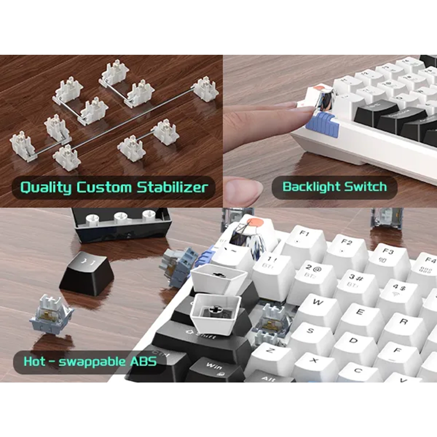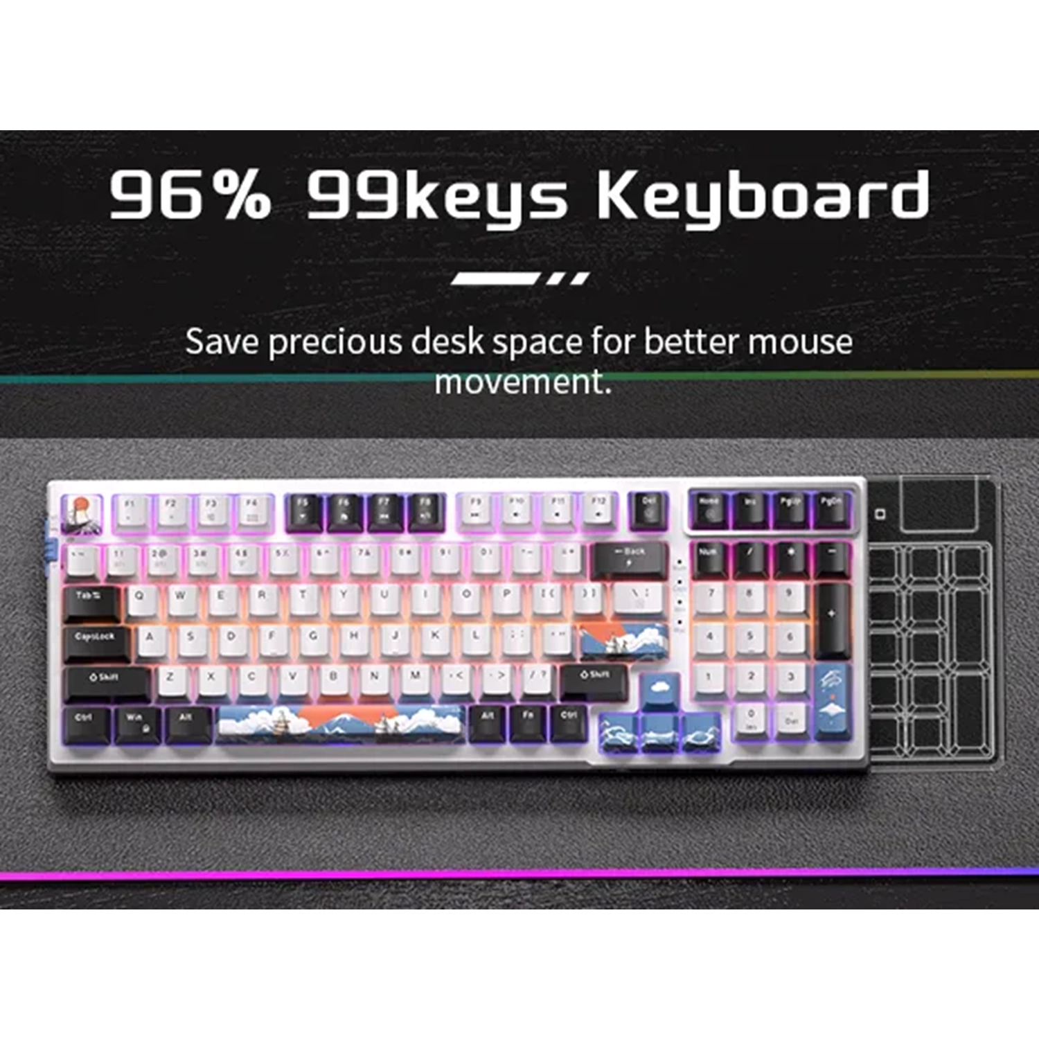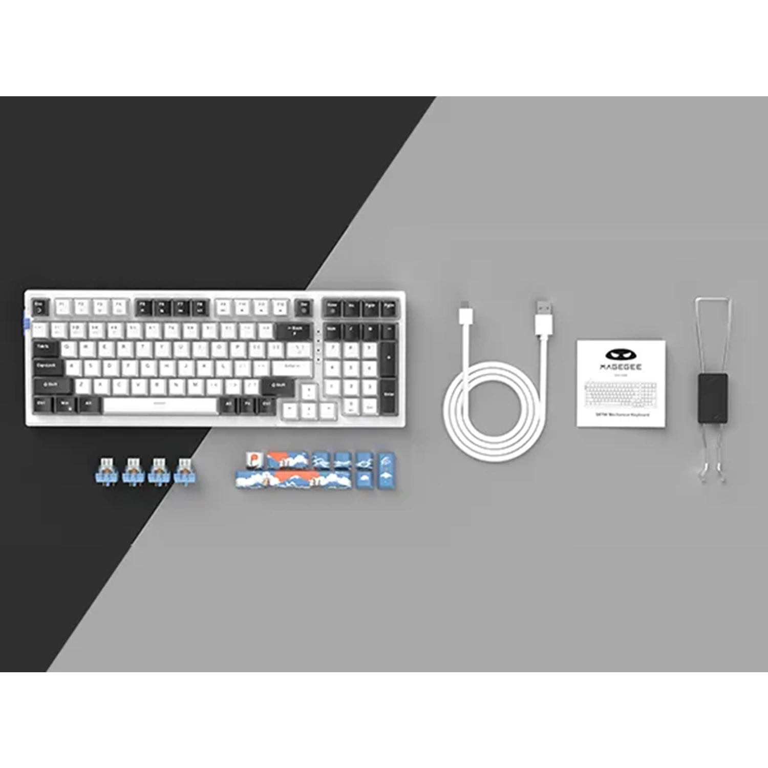 MageGee SKY98 Kablosuz/Bluetooth/Kablolu RGB Hot-Swap Gasket Siyah-Beyaz Gaming Mekanik Klavye